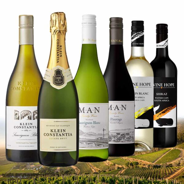 Balíček vín 2 vinárstiev Južnej Afriky obsahuje 2x O,75 l Klein Constantia, 2x O,75 l MAN a 2x O,75 l Divine Hope: