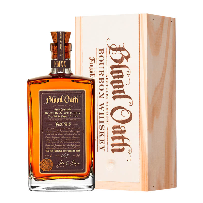 Blood Oath Pact No.6 Kentucky Straight je majstrovská bourbon whiskey, ktorú si zapamätáte! Za jej výnimočnou chuťou sa ukrýva chuťový a aromatický profil získaný zmiešanými troch rôznych ražných kentucky whiskey: 14-ročnej, 8-ročnej a 7-ročnej. Tie následne spolu zreli v sudoch po cognacu. Výsledkom je skvelý bourbon so sladkými tónmi vanilky, karamelu a nevšedného brandy. Celosvetovo dostupné iba v limitovanom množstve 17 000 fliaš.