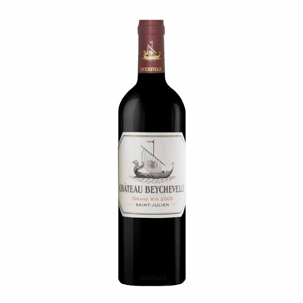Beychevelle 2003 sa skladá z odrôd v pomere 53 % Cabernet Sauvignon, 34 % Merlot, 8 % Cabernet Franc a 5 % Petit Verdot. Napriek extrémnym horúčavám v júni, júli a auguste toto prekrásne víno odzrkadľuje terroir. Má hustú slivkovofialovú farbu, sprevádza sladká vôňa cassis a čiernych ríbezlí, široké, okrúhle, šťavnaté ovocné príchute, stredné telo a náznaky fíg, korenia a cédru. Toto úplné, šťavnaté, úplne zrelé a pôsobivé víno sa môže konzumovať počas nasledujúcich rokov.