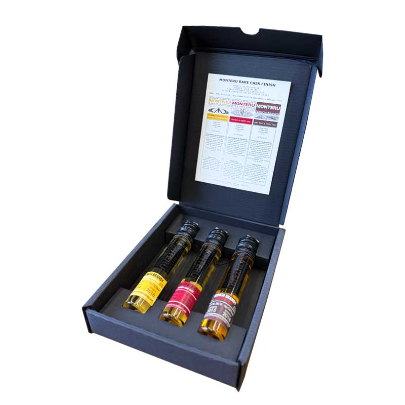 Exkluzívny degustačný set Monteru Rare Cask prináša tri miniatúry výnimočného francúzskeho brandy, ktoré sú dôkazom toho, že remeselná destilácia a práca s drevom dokážu vytvoriť úplne odlišné chuťové svety. Každé brandy prechádza dvojitou destiláciou a zreje najprv v francúzskom dube, následne získava svoj charakter v špeciálnych sudoch, ktoré mu dodávajú nezameniteľný profil.