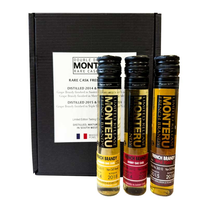 Degustačný set Monteru Rare Cask French Brandy – objavte remeselné francúzske brandy v troch jedinečných podobách