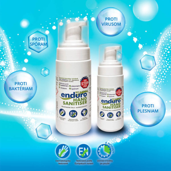 Enduro Hand Sanitiser je účinný proti koronavírusu! Stačí 60 sekúnd na zabitie vírusov, baktérií, mikroorganizmov či plesní.