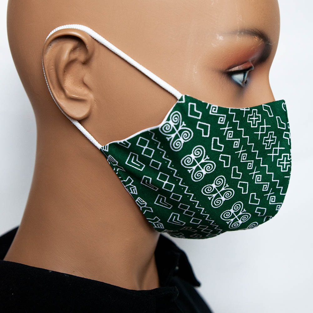 Vzorované bavlnené antibakteriálne rúško Folklór na tvár s gumičkou na praktické opakované použitie je vyrobené na Slovensku špecializovanou spoločnosťou v Bratislave.