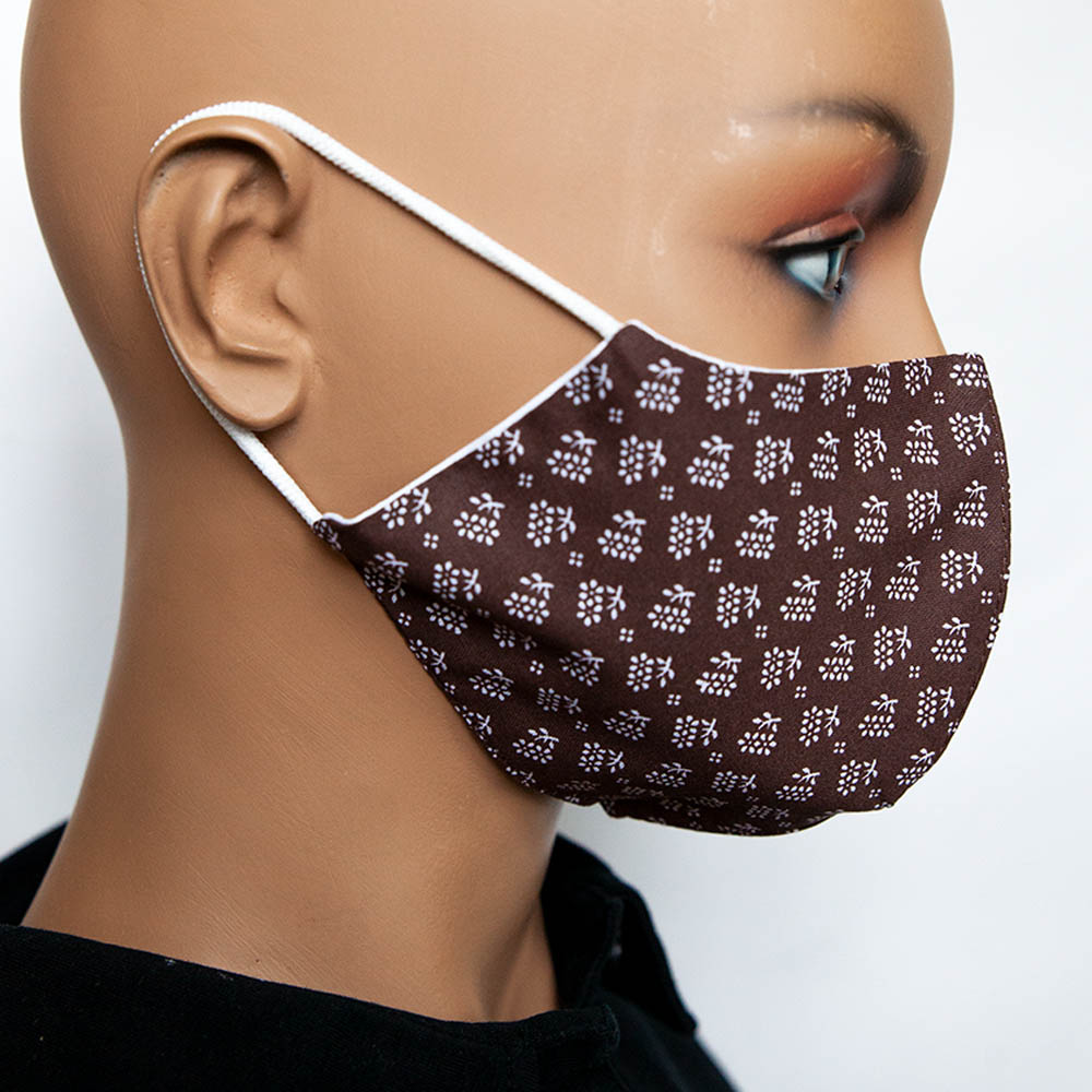 Vzorované bavlnené antibakteriálne rúško Kvietky na tvár s gumičkou na praktické opakované použitie je vyrobené na Slovensku špecializovanou spoločnosťou v Bratislave.