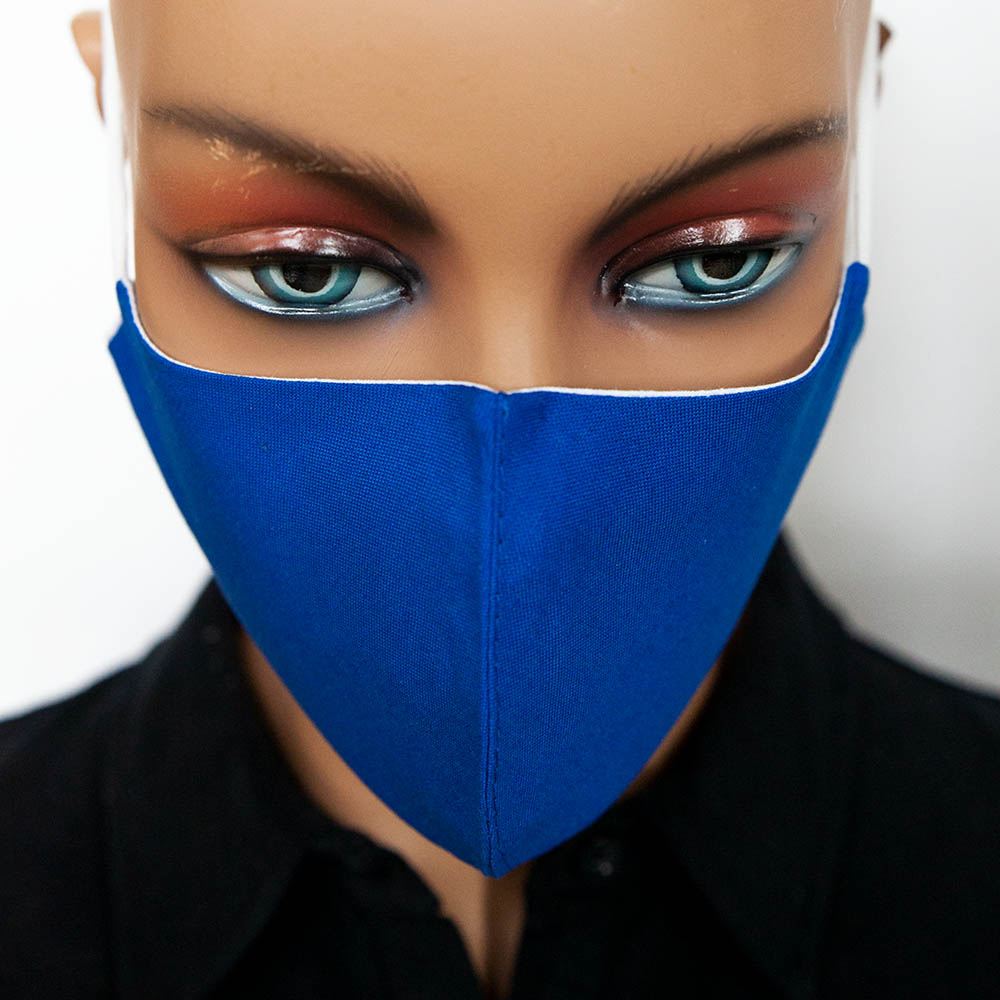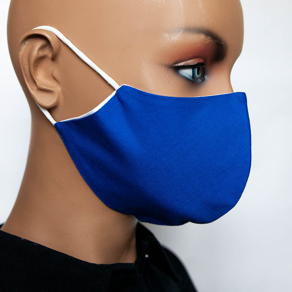 Modré Capri bavlnené antibakteriálne rúško na tvár s gumičkou na praktické opakované použitie je vyrobené na Slovensku špecializovanou spoločnosťou v Bratislave.