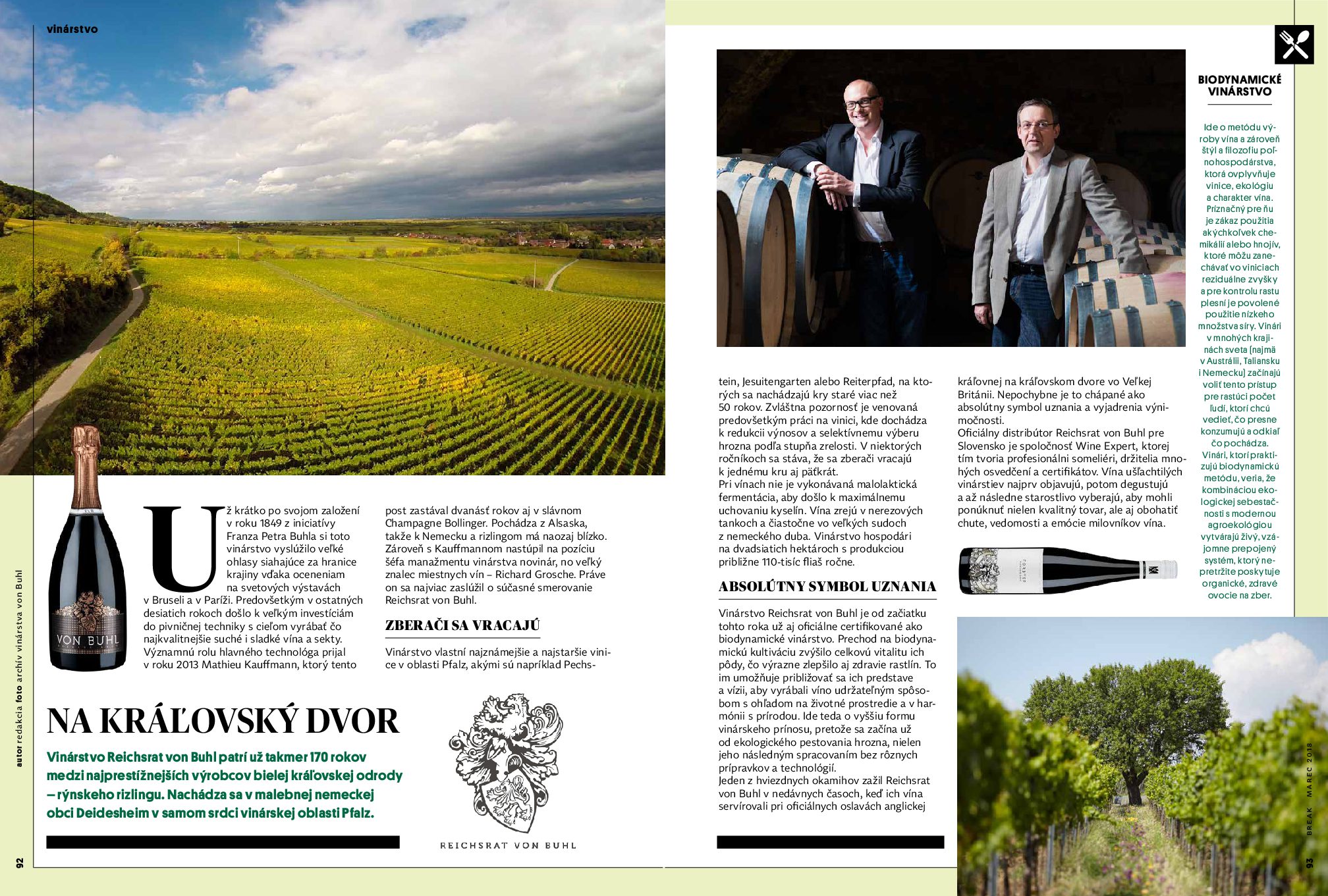 Vinárstvo Reichsrat von Buhl patrí už 150 rokov medzi najprestížnejších výrobcov bielej kráľovskej odrody – rýnskemu rizlingu. Nachádza sa v malebnej nemeckej obci Deidesheim v samom srdci vinárskej oblasti Pfalz. Už po svojom založení v roku 1849 si vinárstvo vyslúžilo veľké ohlasy siahajúce za hranice krajiny vďaka oceneniam na svetových výstavách v Bruseli a v Paríži. Predovšetkým v ostatných desiatich rokoch došlo k veľkým investíciám do pivničnej techniky s cieľom vyrábať čo najkvalitnejšie suché i sladké vína a sekty. Významnú rolu hlavného technológa prijal v roku 2013 Mathieu Kauffmann, ktorý tento post zastával dvanásť rokov aj v slávnom Champagne Bollinger. Pochádza z Alsaska, takže k Nemecku a rizlingov má naozaj blízko.