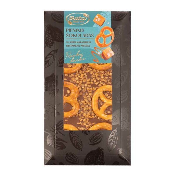 Majstri čokolády Rūta prinášajú jedinečnú symfóniu chutí, kde sa jemná mliečna čokoláda spája s chrumkavými praclíkmi a kúskami slaného karamelu. Táto dokonalá rovnováha sladkosti, jemnej slanosti a lahodnej chrumkavosti poteší každého, kto miluje netradičné spojenia.