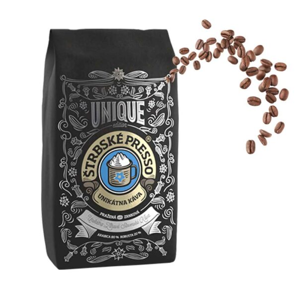 „Dvakrát prané kávové zrná roztriedené do rovnakej veľkosti zabezpečujú ich rovnovážne praženie. Práve vďaka tomuto Vám ŠTRBSKÉ PRESSO Unique SILVER prináša výnimočnú kávu so širokospektrálnymi blahodarnými účinkami na vaše zdravie. S originálnym spojením kávových korenín slovenského horca, škorice a kardamónu vám ponúka synergickú dávku energie a zdravia na každý deň.“