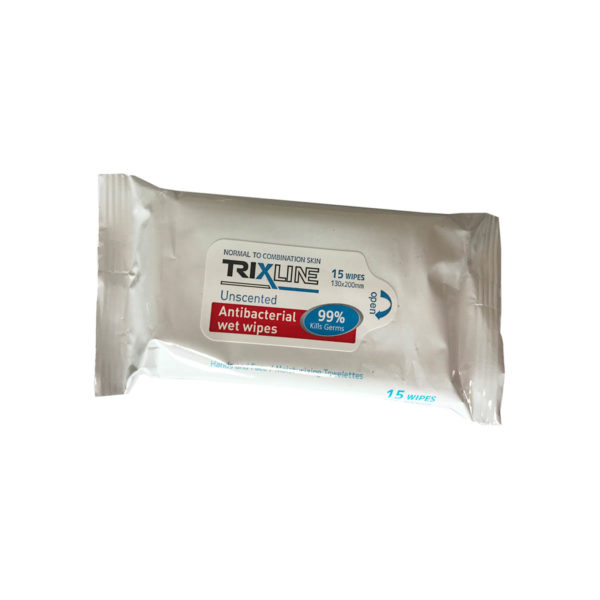 Trixline antibakteriálne vlhčené utierky, 15 ks
